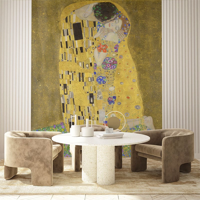 The love that unites them is immutable, the communicative power and the charm are incredible. Gustav Klimt’s kiss, with its beautiful gold backdrop, shines thanks to cutting-edge printing technologies to illuminate the rooms. Wallpaper and other wall coverings become the ideal support for interior art projects with an exclusive charm.