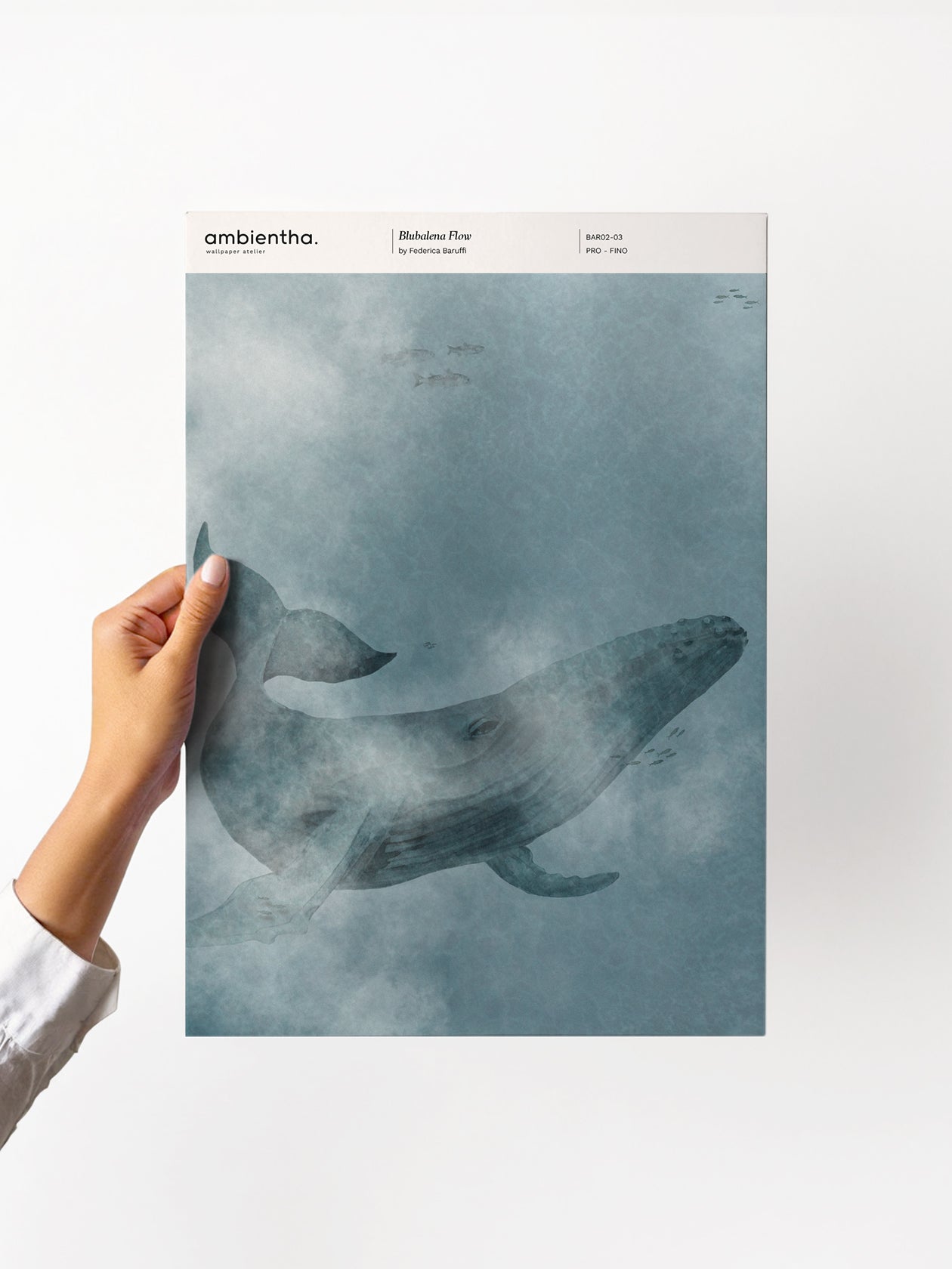 The sound of whales that gracefully swim in the ripples of the seas and fly. Blubalena Flow wallpaper is inspired by children’s imaginations: the light is reflected in the petroleum green shades and creates an intense and elegant atmosphere.