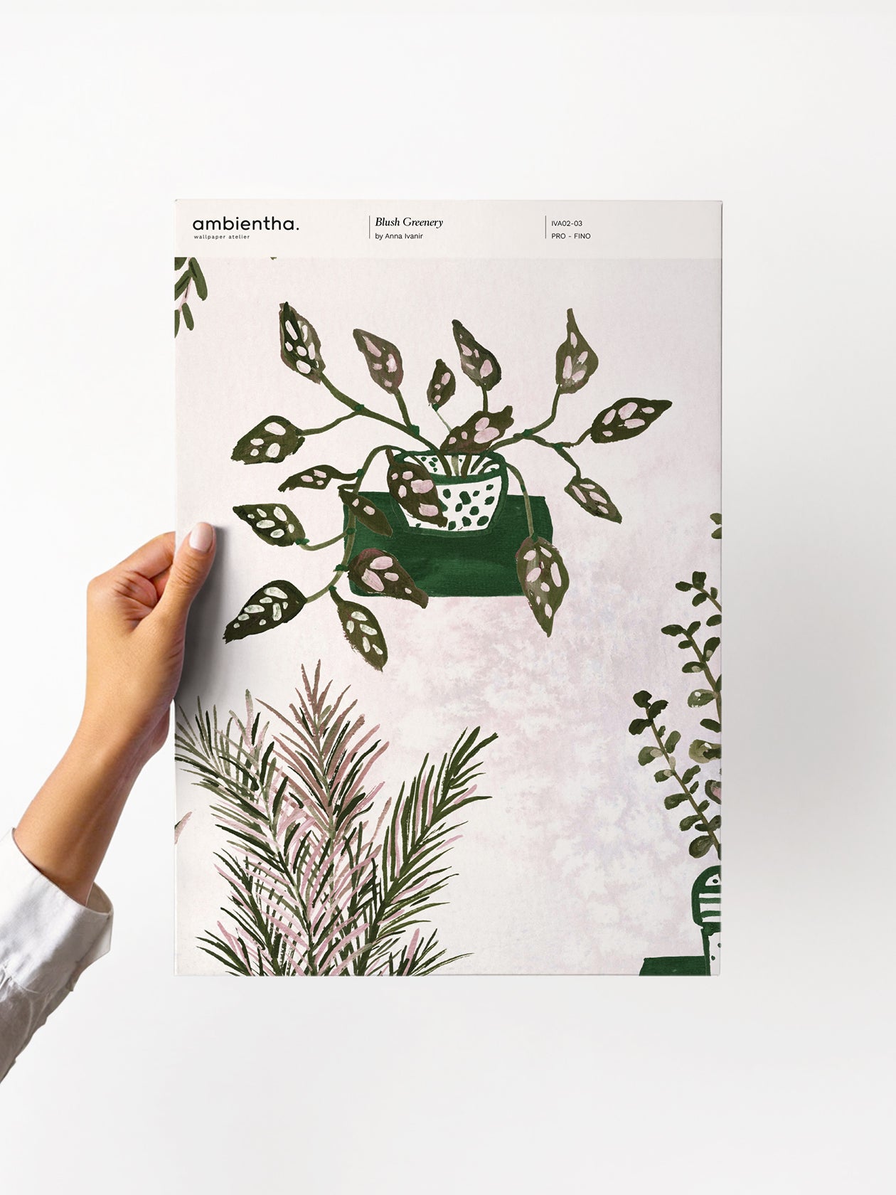 The dream of an evergreen garden. The wallpaper is inspired by the principles of biofilic design to recreate a resting and reinvigoration angle. You are the author of the botanical wall: choose where to place the plants you prefer and their shades.