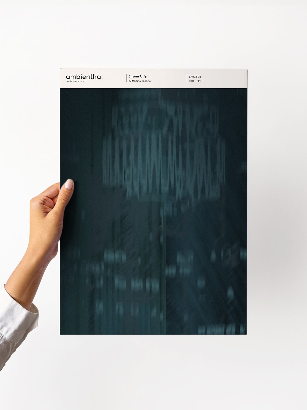 Modern wallpaper, a dream in the city, a fleeting shot of the night. The monochrome design colors the walls gently creating delicate beams of light. Dream City is the ideal artistic touch to decorate neutral living rooms or bright offices.