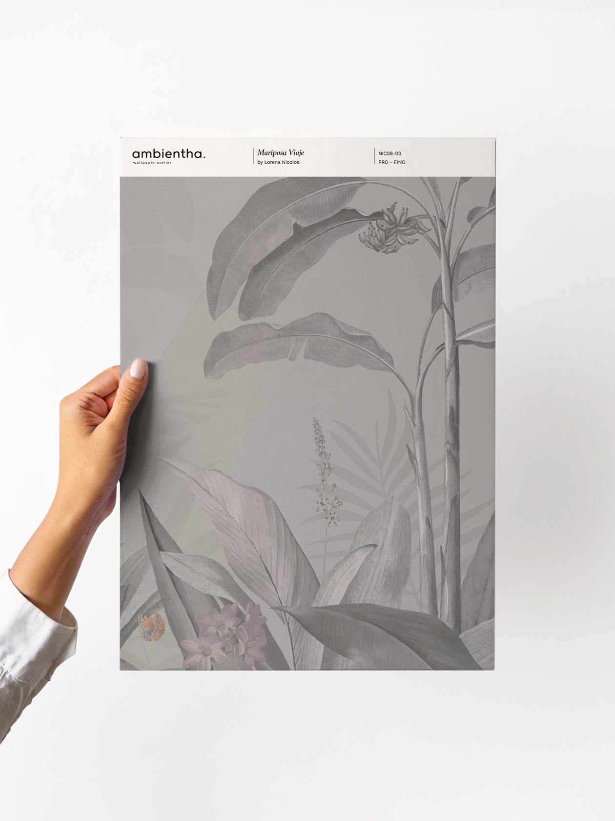 Ambientha wallpaper samples allow you to see and touch the finishes before purchasing. They offer a faithful preview of the colors and textures of the chosen wallpaper.