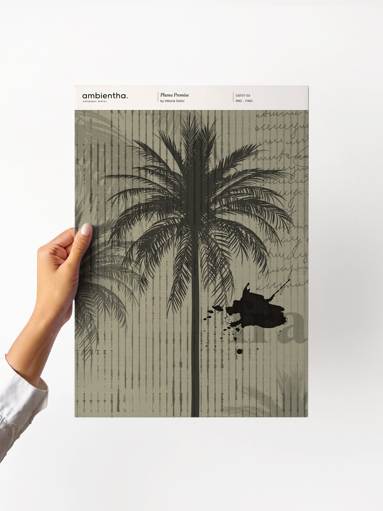 The exchange of love letters between two lovers. Pluma is like a collage composed of unique elements that smell of distant journeys and rediscovered moments. Palm tree wallpaper for lovers of unconventional tropical style.