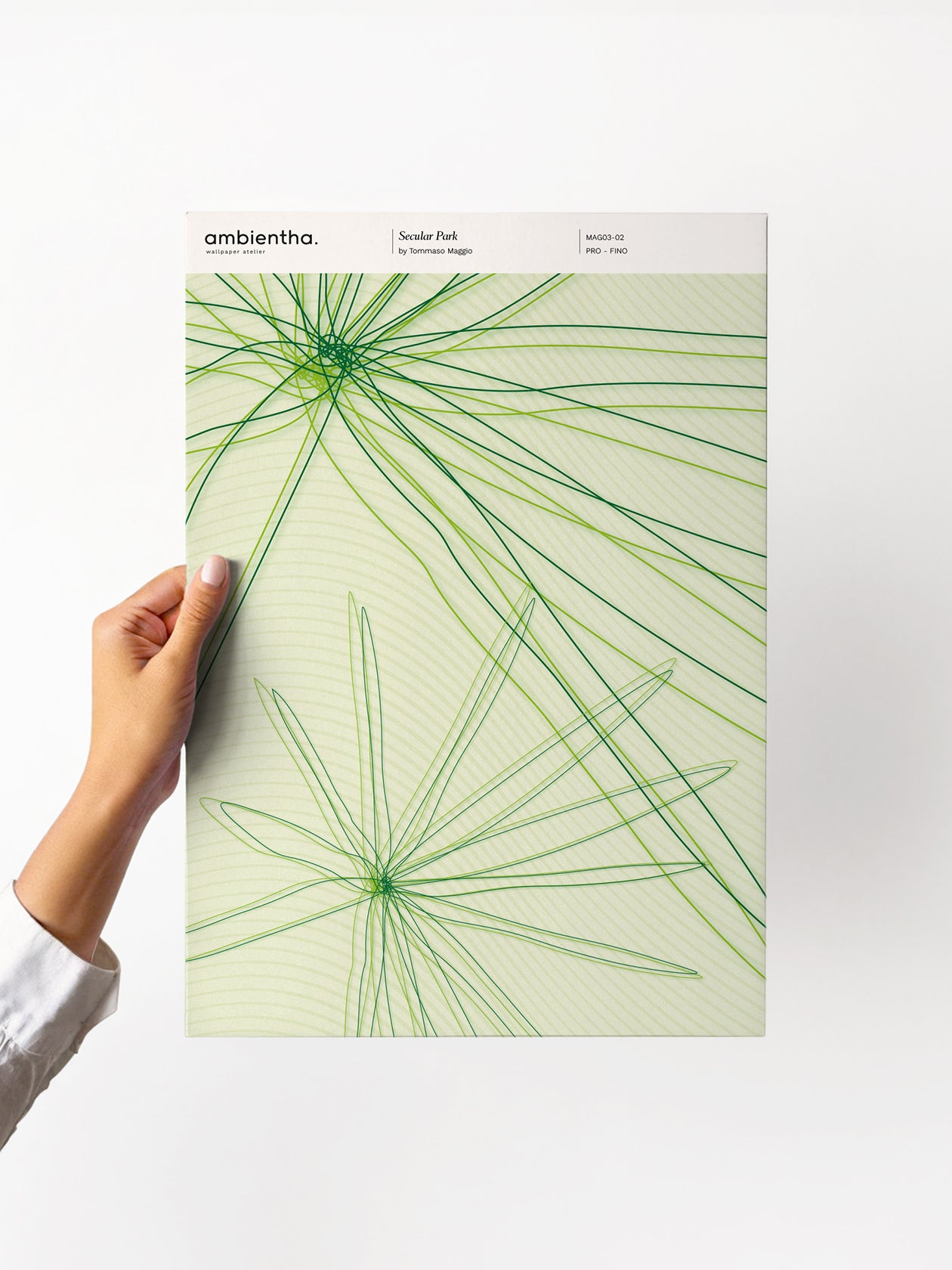 The vibrations of a green city core intoxicate the mind and create new thoughts, which blossom like flowers in a continuous line drawing. A single continuous line forms the minimal, vibrant and modern wallpaper. Park is inspired by the tonality of paths and secular trees.