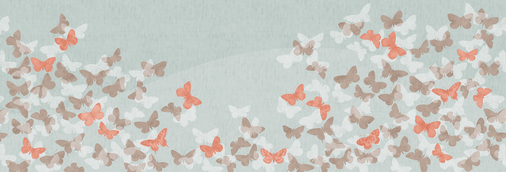 A kaleidoscope of butterflies in flight. In Volo Libero design, the vintage citation and the spontaneity of the movement make the wallpaper a metaphor of freedom, to be protected as well as many animals at risk of extinction, including several species of butterflies.