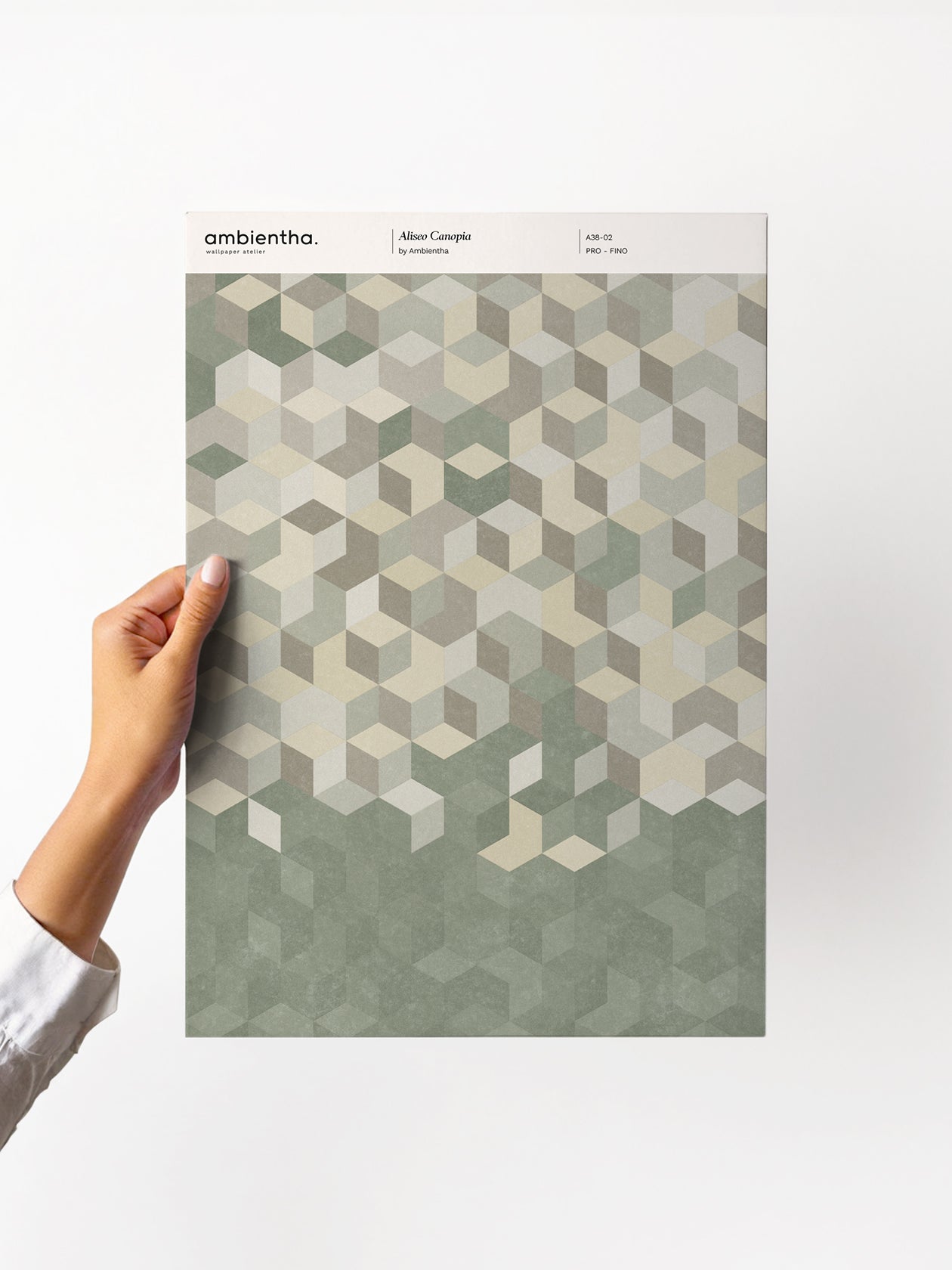 L’aria geometrica di Aliseo Canopia cattura il movimento impalpabile del vento tra le fronde e lo trasforma in un ritmo visivo in dissolvenza. I rombi, inizialmente definiti, si sfaldano progressivamente, come riflessi increspati sull’acqua. La carta da parati geometrica moderna crea equilibrio tra struttura e fluidità, tra ordine e metamorfosi: ideale per ambienti dedicati al benessere e spazi relax, per creare atmosfere sospese tra materia e luce.