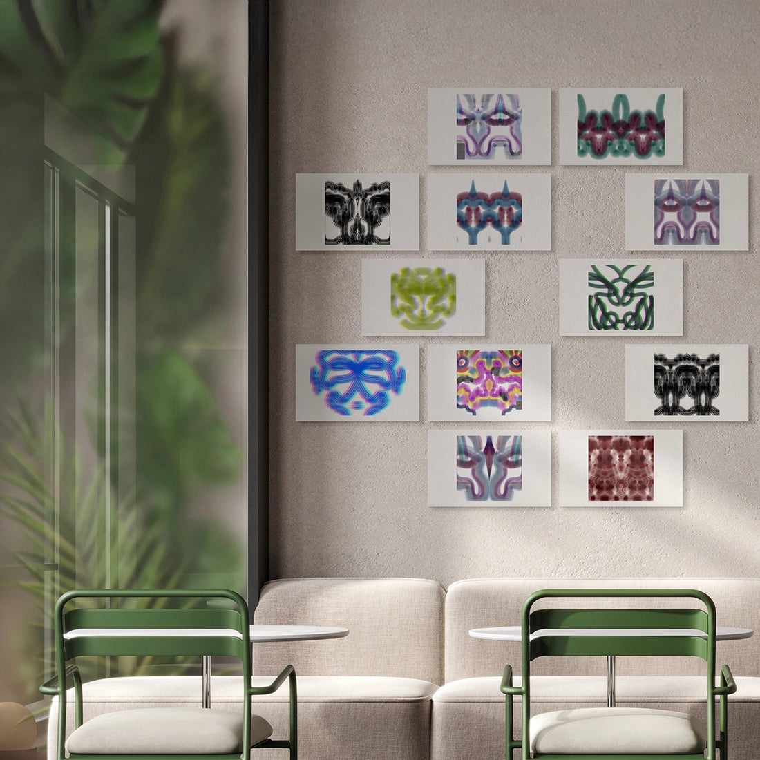 L’animo brioso di Alma detta l’andamento delle figure che simboleggiano il legame con l’ambiente. La carta da parati si pone come elemento decorativo di contrasto grazie allo sfondo saturo di colore, per infondere energia positiva e ‘sbilanciare’ il rigore minimalista.