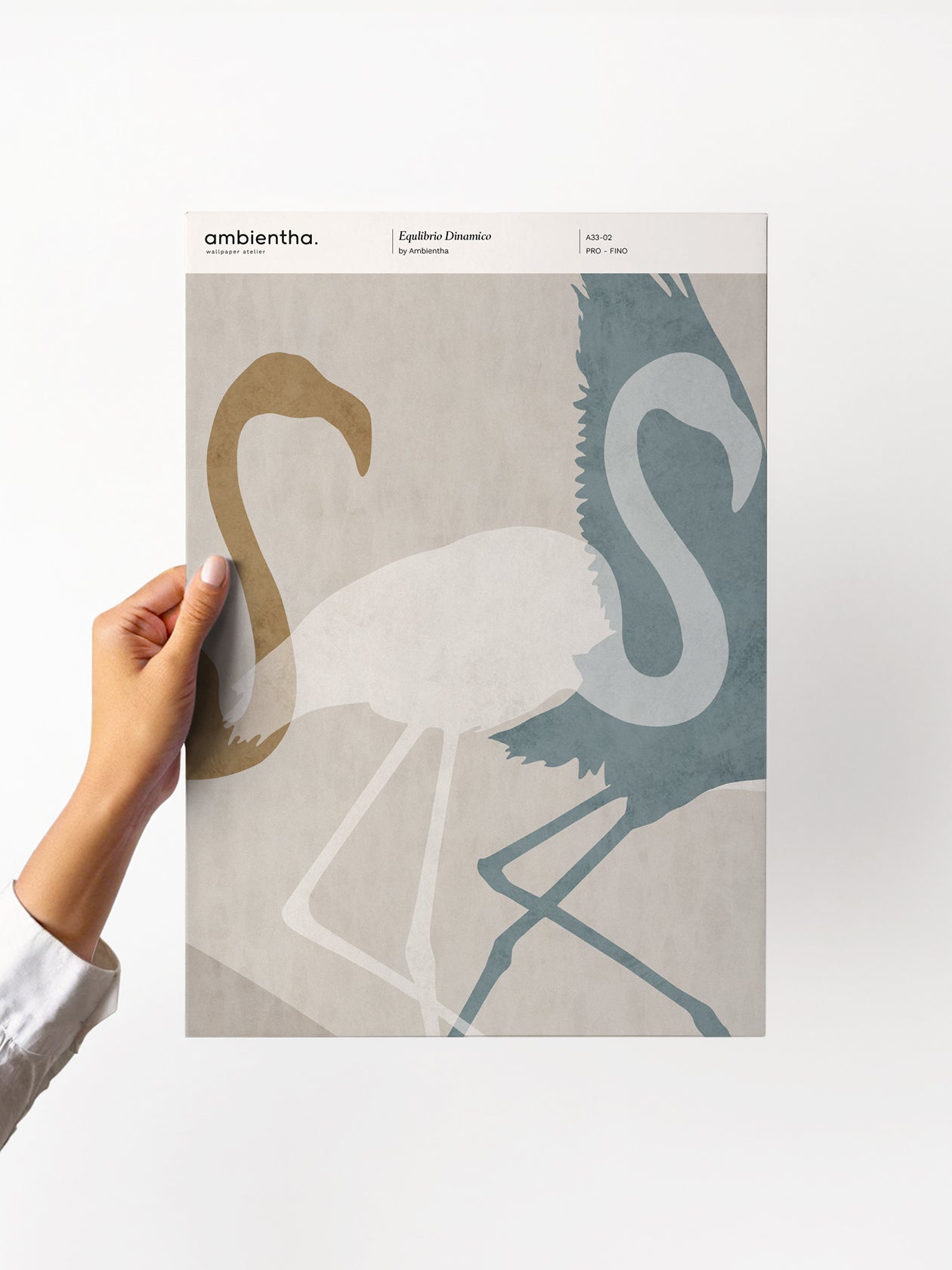 La carta da parati Equilibrio Dinamico dona una visione leggiadra e contemporanea di un soggetto ormai consumato. Il fenicottero lascia la sua posizione di stabilità per alzarsi in volo. Il design per creare atmosfere dal richiamo etnico con il design dai toni e dalle texture naturali.