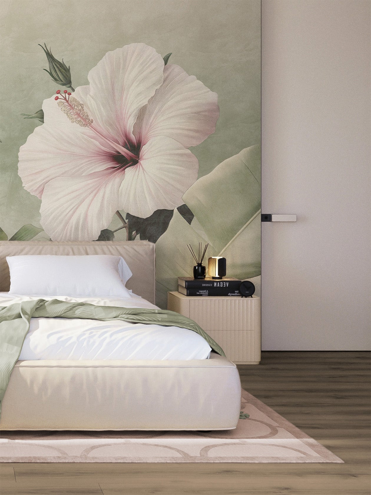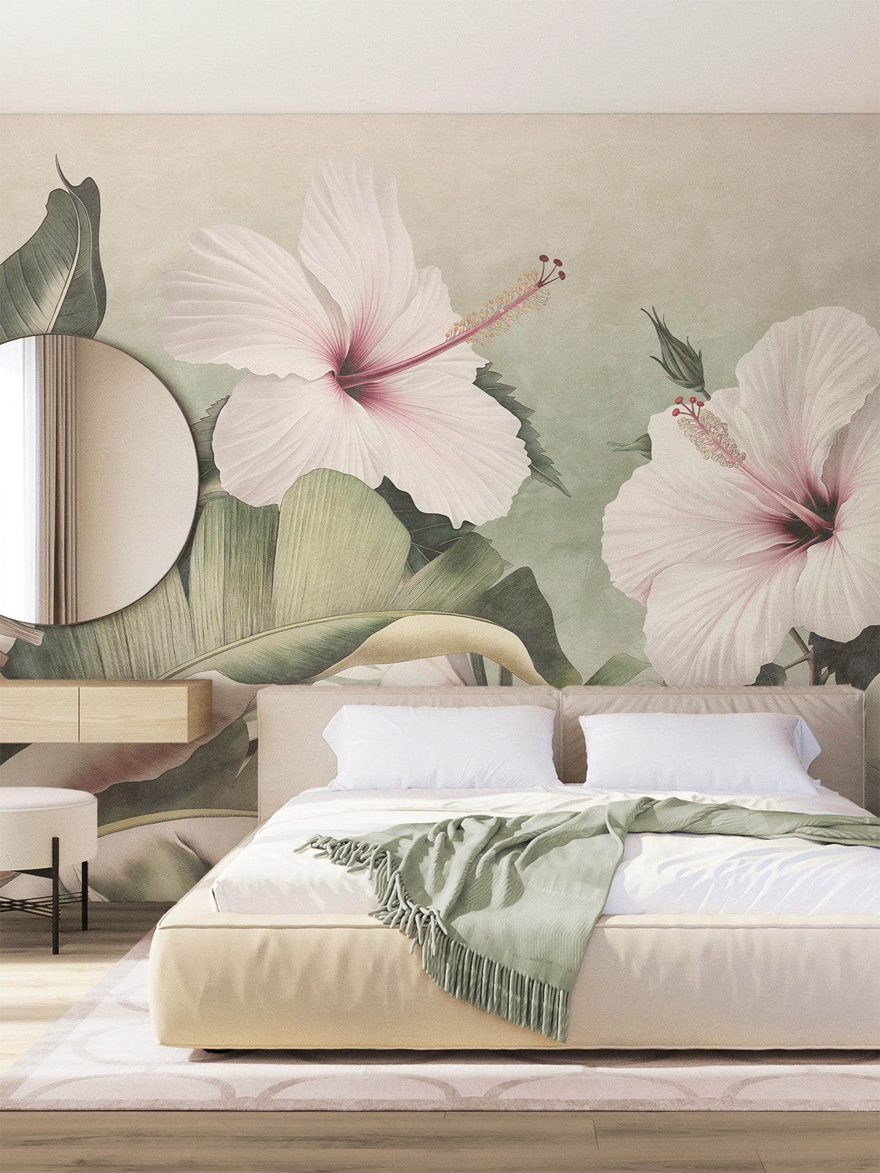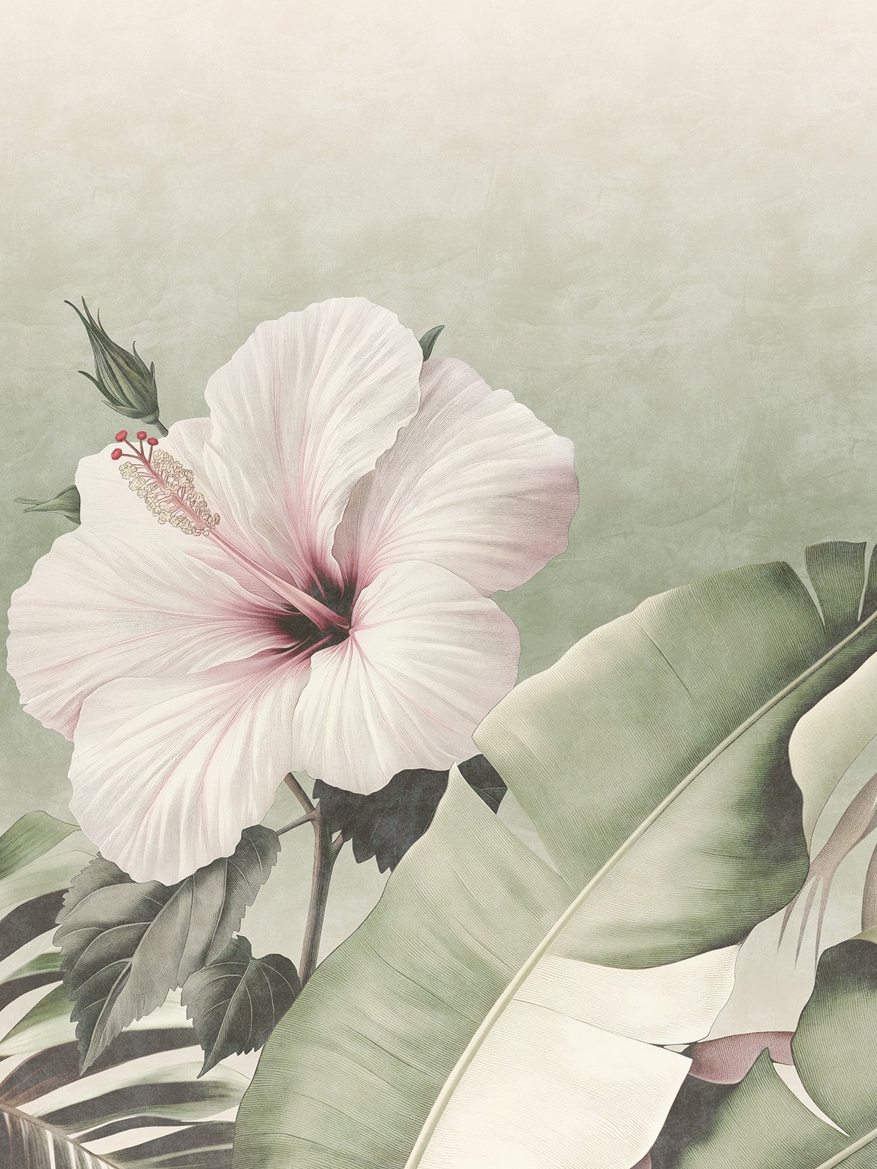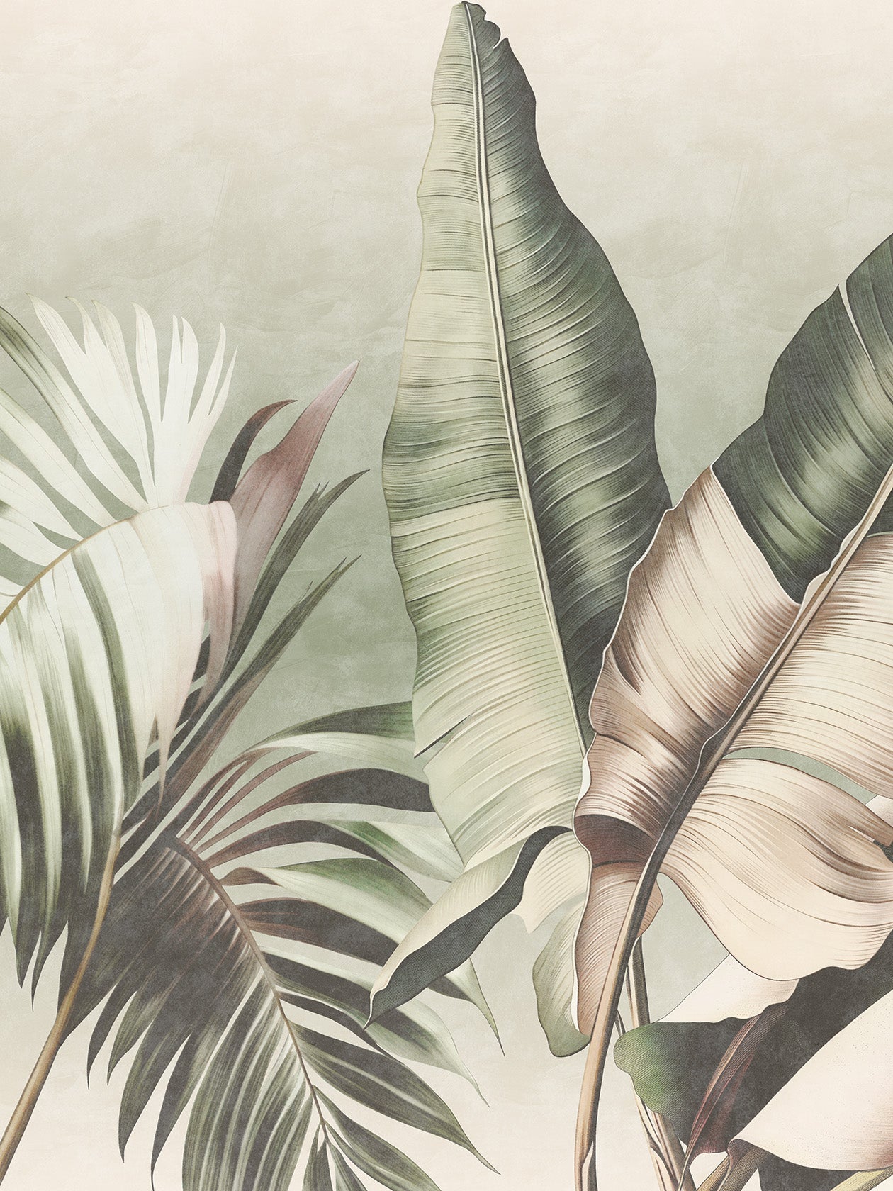 Una danza di fiori e foglie originale e potente. Eterea è la variante più contrastata di Flor de Luz, nata per ambienti intimi dove il tempo sembra rallentare. Una carta da parati che incanta, dove i fiori si stagliano tra la le foglie tropicali, sfumature quasi iridescenti e luci dorate. Ideale per: camere da letto dai toni cipriati, dressing room, pareti lettura immerse nella quiete. Abbinamenti consigliati: velluto écru, specchi antichi, legni sbiancati.