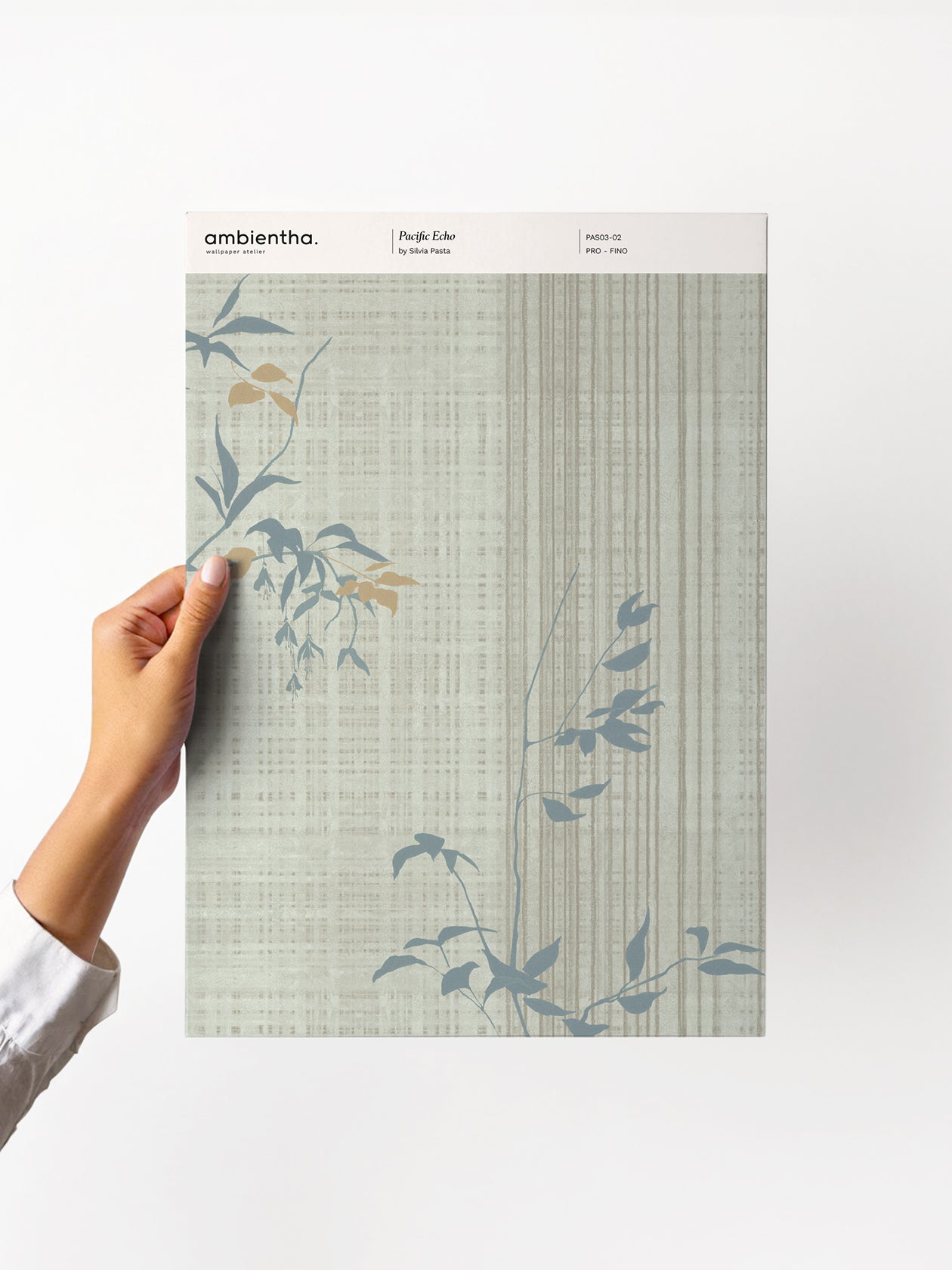 Pacific Echo è il giardino dei ricordi. La carta da parati è un design naturale per ambienti japandi, minimal e caldi. Influenze orientali e scandinave scoprono una composizione essenziale e dinamica per sensazioni di intima tranquillità.