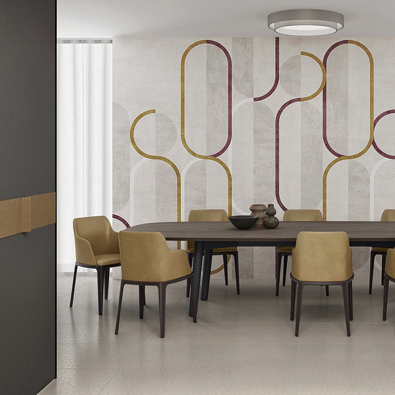 Un pattern imprevedibile. La carta da parati Curve associa la texture grezza dai toni della terra a linee dai colori decisi, caldi e raffinati. Oltre gli anni 70’, la parete trasmette libertà creativa e diventa un fondale contemporaneo dalla simmetria sinuosa.