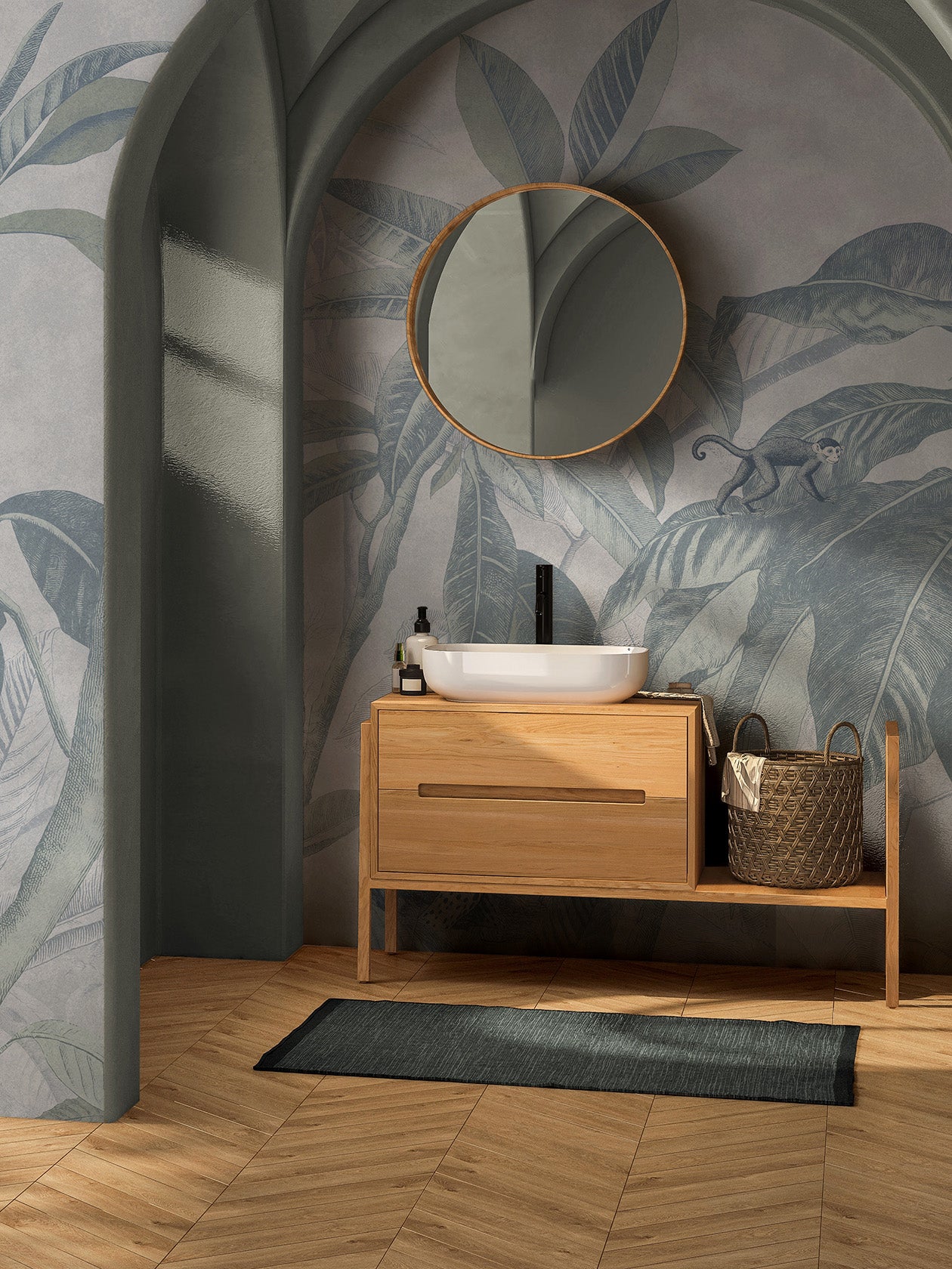 La carta da parati Yaguara Laguna dalla tonalità laguna sfuma nel blu della notte, con riflessi che evocano il corso lento di un ruscello al chiaro di luna. L’effetto è sensuale e meditativo, perfetto per ambienti dove il colore è protagonista silenzioso. Ideale per: ingressi scenografici, bagni spa-like, camere da letto immersive e rilassanti. Abbinamenti consigliati: velluti cipriati, marmo Calacatta, dettagli in ottone satinato.